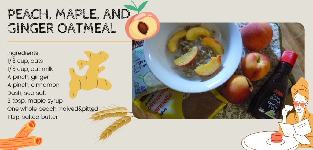 Start your day right with my Peach, Maple, and Ginger Oatmeal. It’s packed full of nutrients, fit to fuel your mind&body for hours after you eat.