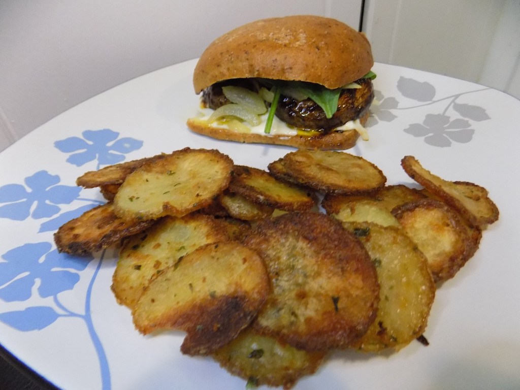 Sometimes it’s nice to revel a little, and it doesn’t mean you need to throw healthy eating out the window, either. That’s why I came up with this recipe! A sandwich that packs in flavor without the added fat by trading red meat for mushrooms and the traditional fried potato chips for baked ones.