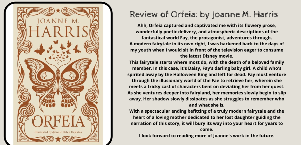 From The Book Nook: A review of Orfeia by Joanne Harris. This modern fairytale touched my heart and was quite a joy to read, not to mention fast.