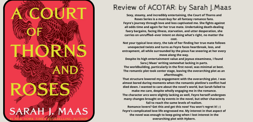 With summer comes summer loving! Time to read a spicy novel or two. This week I review A Court of Thorns and Roses, a sexy, dark series featuring the Fae, courtesy of Sarah J Maas.