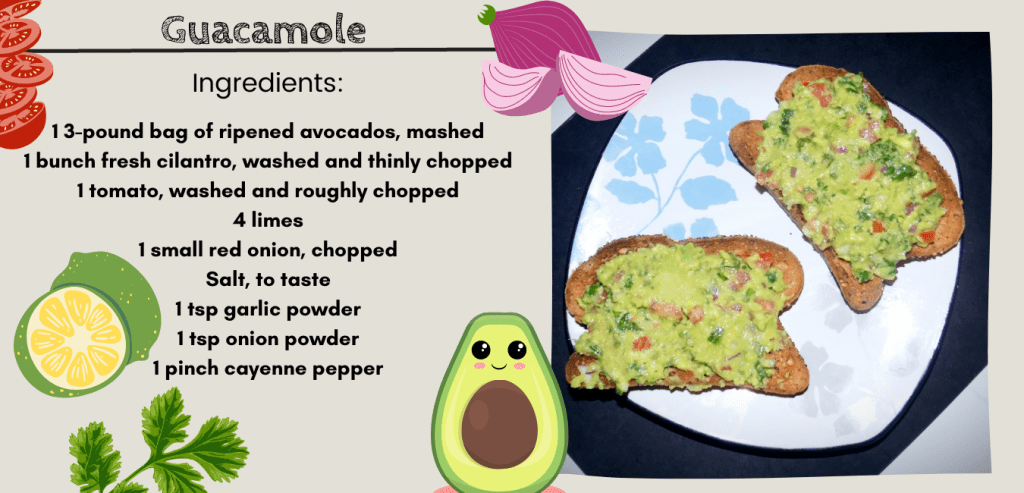 In Healthy Eats, Sweets and Treats: A guacamole recipe.